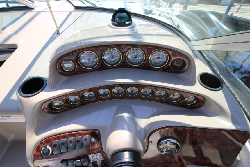 Comes equipped with:Twin Volvo 5.0L GXI 270HP ea engines w/Low hours, stainless steel props, cockpit cover, full enclosures, double bimini top, new 2025 hydrofoam cockpit & swim platform flooring, upgraded Clarion bluetooth marine stereo w/Cockpit & cabin speakers, depth sounder, bow sun pads, transom shower, full galley w/Refrigerator/freezer, microwave, stove + sink, windlass anchor, remote spotlight, extended swim platform w/Ladder, and more! Freshwater only! Schedule an appointment to see this great boat!
